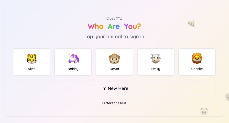 - No passwords to remember: Students sign in by picking their animal picture and entering a 4-digit number